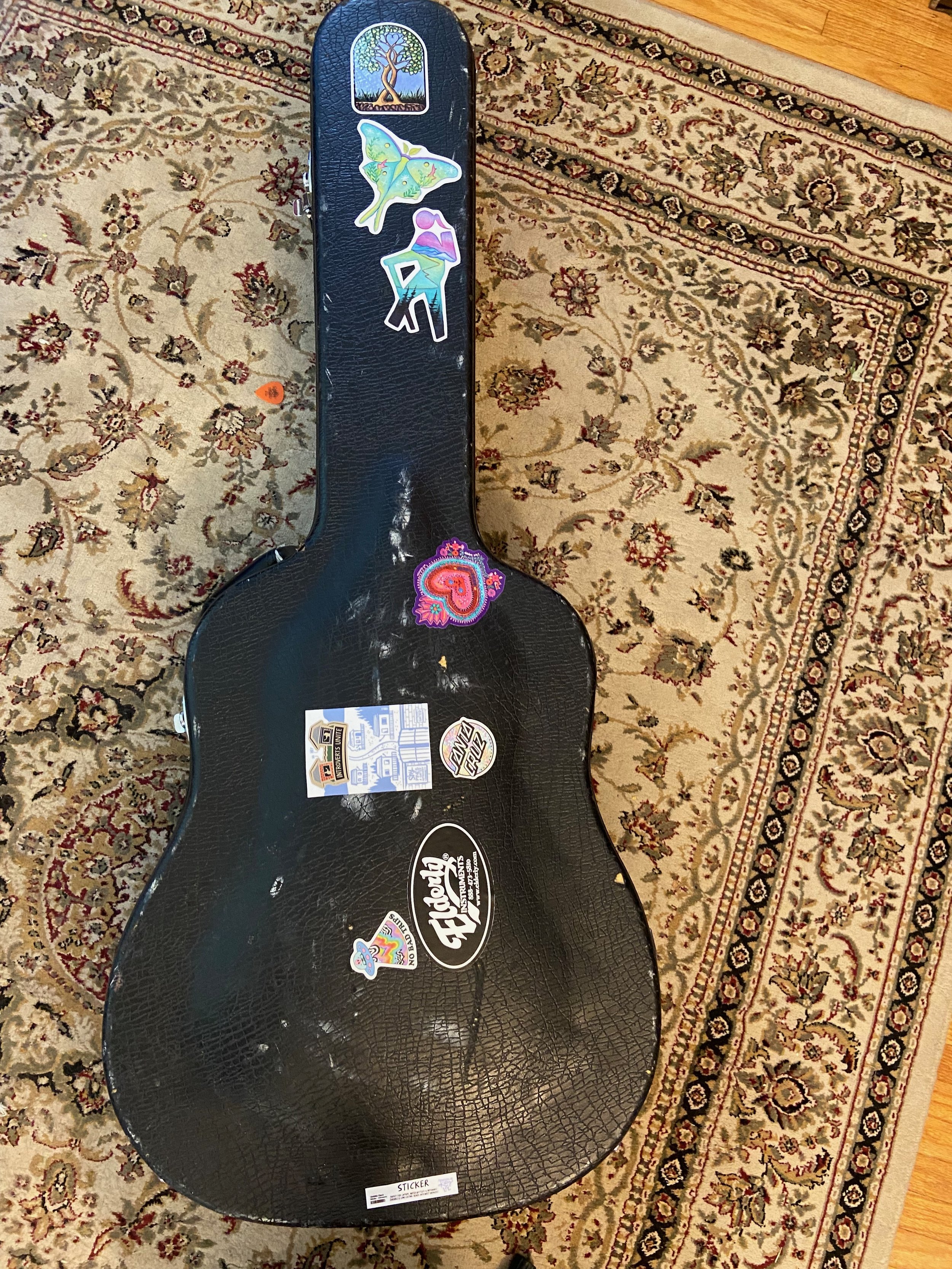 Willow’s guitar case when it had fewer stickers.